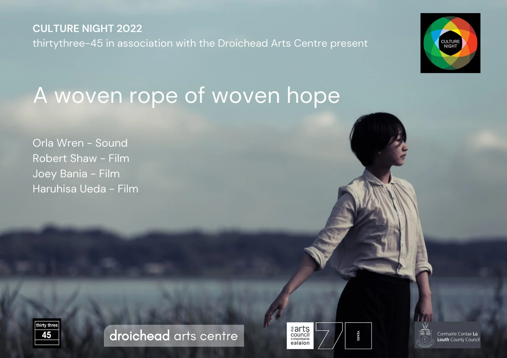 Rooted in friendship and common creative fields, A Woven Rope Of Woven Hope is an audiovisual exhibition and installation from sound artist Orla Wren, filmmakers Robert Shaw (Lumacell), Joey Bania and Haruhisa Ueda (Film Sessions).